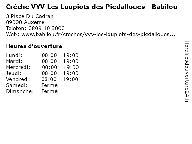 | Lundi | 08:00-19:00 |