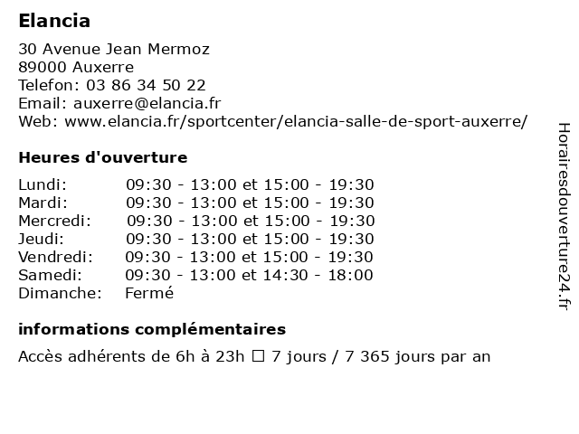 | Lundi | 09:30-13:00 et 15:00-19:30 |