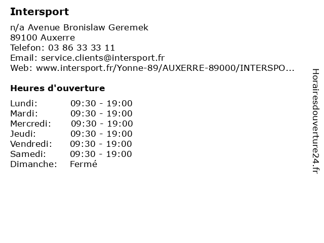 | Samedi | 09:30-19:00 |