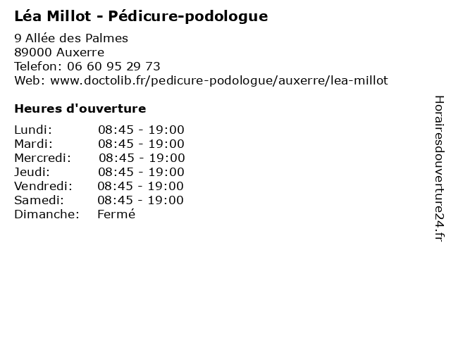 | Lundi | 08:45-19:00 |