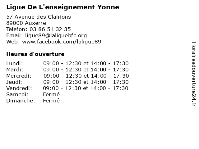 | Lundi | 09:00-12:30 et 14:00-17:30 |