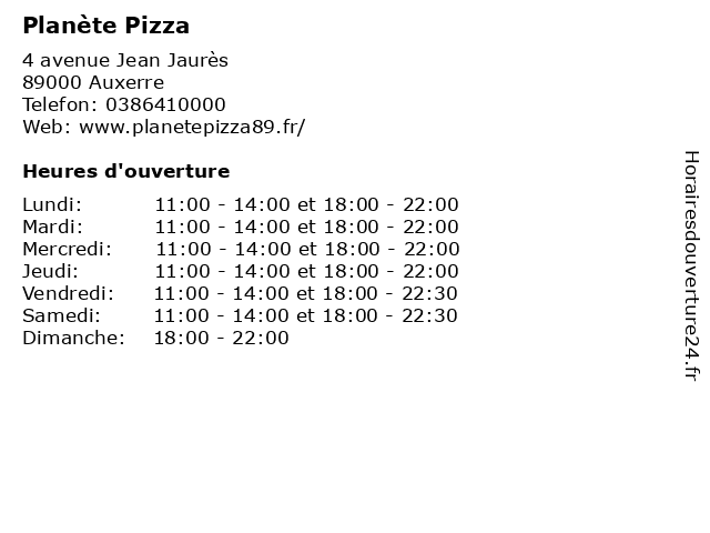 | Lundi | 11:00-14:00 et 18:00-22:00 |