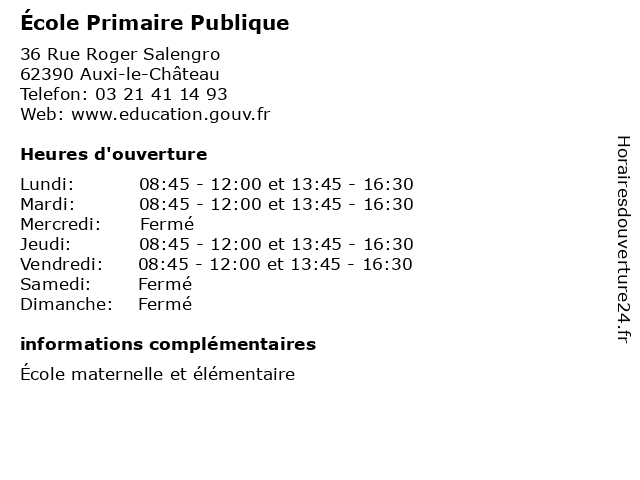 | Lundi | 08:45-12:00 et 13:45-16:30 |