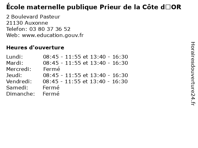 | Mardi | 08:45-11:55 et 13:40-16:30 |