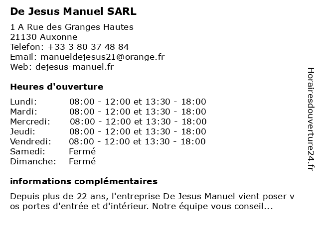| Lundi | 08:00-12:00 et 13:30-18:00 |