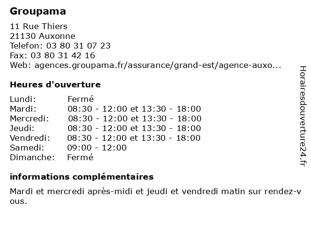 | Mardi | 08:30-12:00 et 13:30-18:00 |