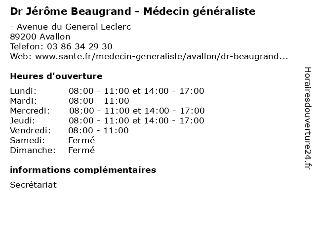 | Lundi | 08:00-11:00 et 14:00-17:00 |