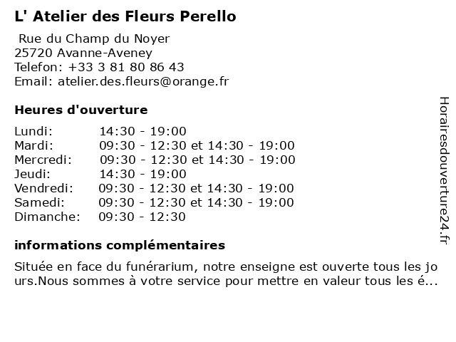 Samedi | 09:30-12:30 et 14:30-19:00 |