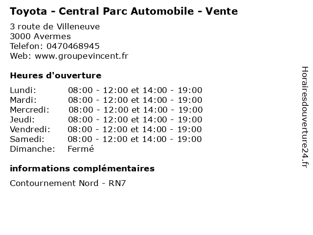 | Lundi | 08:00-12:00 et 14:00-19:00 |