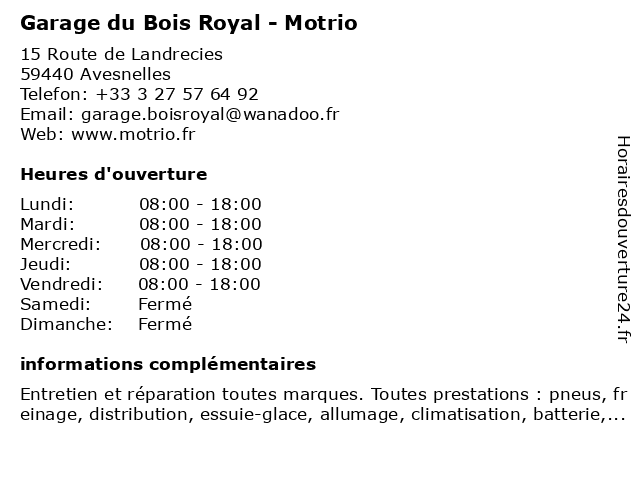 Termes de recherche pour Garage du Bois Royal - Motrio:garage, royal, du, bois, motrio, garage automobile, garage avesnelles, garage multimarque, pneus motrio, garage motrio avesnelles, garage auto à proximité, garage motrio à proximité, garage à proximité, promo motrio, rendez-vous garage |
