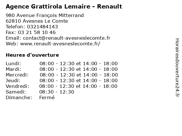 | Lundi | 08:00-12:30 et 14:00-18:00 |