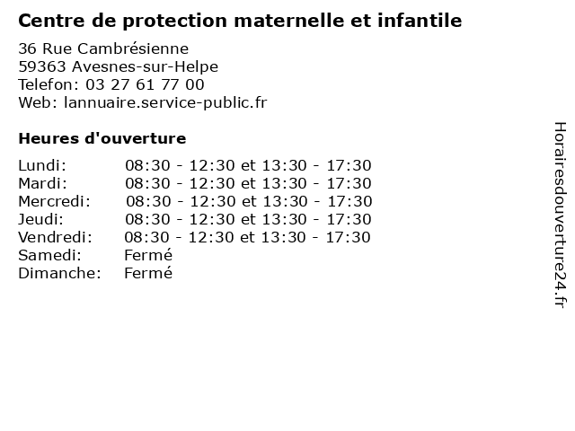 | Mardi | 08:30-12:30 et 13:30-17:30 |