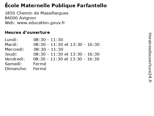 | Mardi | 08:30-11:30 et 13:30-16:30 |