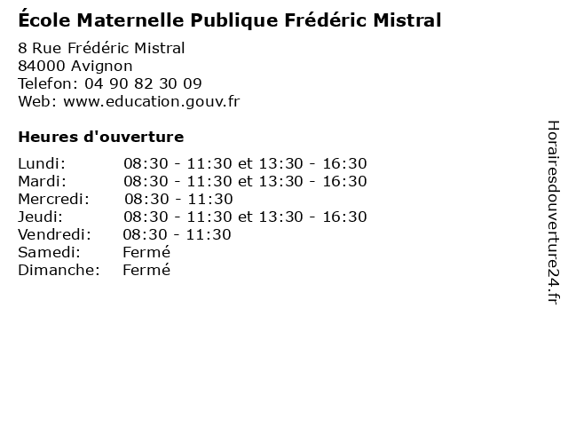 | Mardi | 08:30-11:30 et 13:30-16:30 |