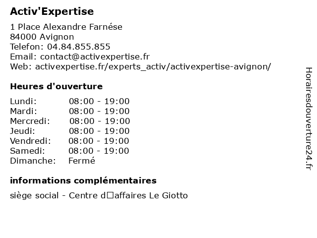 2 Activ'Expertise MONTELIMAR (Distance: 0,16 km) 1 Rue François Premier, 84000 Avignon activ'expertise, montelimar 3 ECCOV - EXPERTISE COMPTABLE CONSEIL ECCOV (Distance: 0,99 km) 380 Rue Paul Eluard, 84000 Avignon comptable, conseil, eccov, expertise 4 Idea Avignon - Expertise (Distance: 3,46 km) 85 rue Claude André Paquelin, 84000 Avignon assurance, auto, automobile, avignon, collision, conseil, d'expertises, expertise, idea, permanences 5 In Actum - Expertise Comptable et Conseils (Distance: 5,46 km) 856 avenue de l'Aérodrome, 84916 Avignon actum, comptable, comptables, conseils, et, expertise, experts, in 6 Teoria Expertise (Distance: 5,81 km) 150 place Céréalis résid Le Ceres, 30133 Angles (les) expertise, teoria |