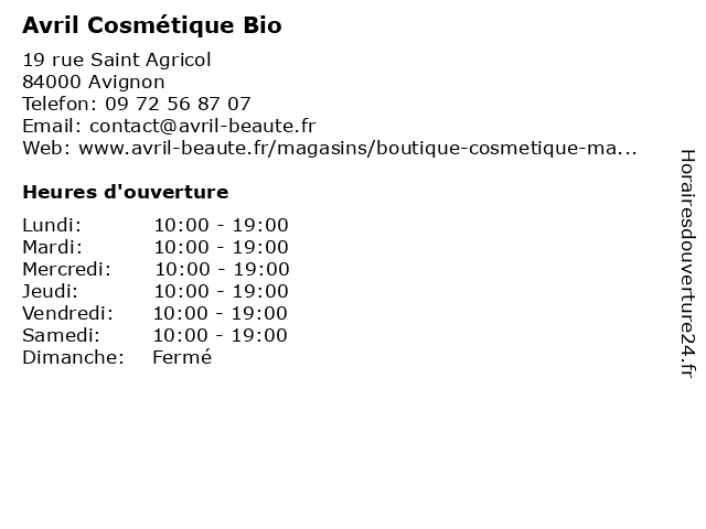 1 Mobilboard - D'AVRIL à OCTOBRE (Distance: 0,30 km) 46 rue des fourbisseurs, 84000 Avignon advertising media, banners, d'avril, mobilboard, mobile billboards, octobre 2 La Boucherie BIO des Halles d'Avignon (Distance: 0,48 km) 18 Place Pie, 84000 Avignon alimentaire, bio, boucher, boucherie, charcuterie, charcutier, d'avignon, des, halles, la, traiteur, viande, épicerie 3 Laboratoire Bio Santis (Distance: 0,83 km) 8 Boulevard Saint-Michel, 84000 Avignon bio, laboratoire, santis, services 4 5 Bio z (Distance: 1,33 km) Madame Jeanine Doeur Wagner, 84000 Avignon bio, doeur, jeanine, restaurants, wagner 5 Laboratoire Bio Santis (Distance: 4,47 km) 161 Avenue Jean Gassier, 84130 Le Pontet bio, laboratoire, santis, services 6 Embelly'bio (Distance: 4,99 km) 500 chemin Saint Pierre de Fraysse, 84000 Avignon embelly'bio, instituts de beauté, soins esthétiques |