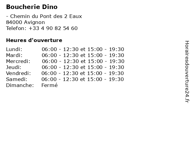 | Samedi | 06:00-12:30 et 15:00-19:30 |