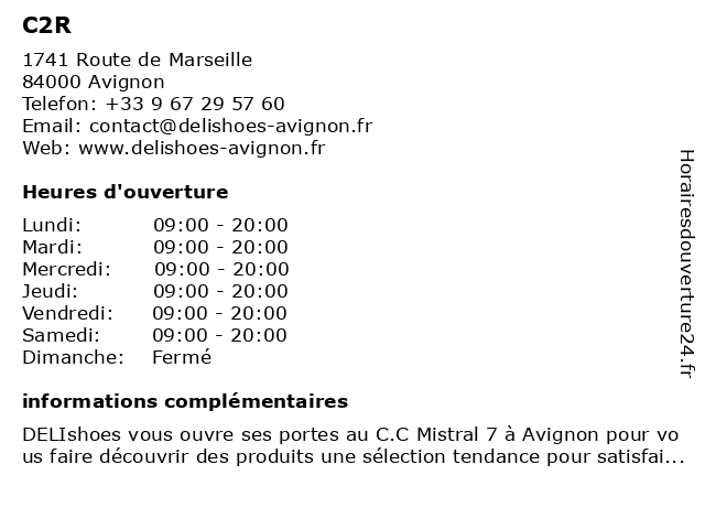 1 Cash Converters Avignon (Distance: 0,03 km) 7 Route de Marseille, 84140 Avignon avignon, bijoux occasion avignon, cash, console occasion avignon, converters, jeux vidéo occasion avignon, magasin cash converters avignon, rachat or avignon, smartphone occasion avignon, électroménager occasion avignon 2 DELIshoes (Distance: 0,04 km) 1741 Route de Marseille, 84000 Avignon accessoires, chaussures femmes, delishoes, enfants, hommes, mode, sacs/bagages 3 Jules (Distance: 0,04 km) Centre Commercial Auchan Mistral 7, 84013 AVIGNON jules, magasin de smokings, magasin de t-shirts, magasin d’accessoires de mode, mode 4 SFR Avignon Mistral 7 (Distance: 0,05 km) 7 Galerie Commerciale Mistral, 84000 Avignon avignon, compagnie de téléphone, magasin de téléphones mobiles, mistral, sfr, vente et installation du câble et du satellite 5 Histoire d'Or (Distance: 0,05 km) 1741 Route De Marseille, 84140 Avignon bijoutier, création de bijoux, d'or, gravures sur bijoux, histoire, magasin de montres, négociant en or, réparation de bijoux, réparation de montres 6 RougeGorge (Distance: 0,06 km) 1741 Route de Marseille, 84140 Montfavet boutique, femme, féminine, lingerie, magasin, rougegorge |