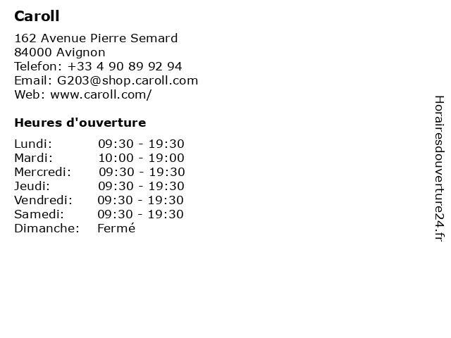 | Mercredi | 09:30-19:30 |
