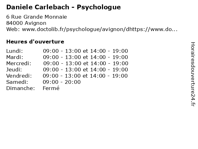 | Lundi | 09:00-13:00 et 14:00-19:00 |