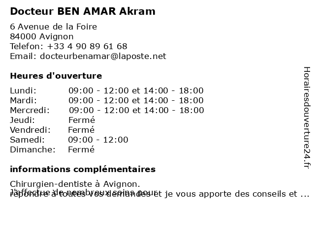 | Lundi | 09:00-12:00 et 14:00-18:00 |