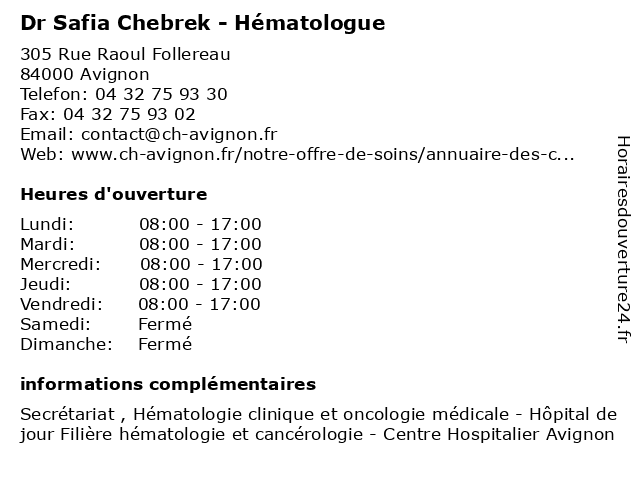 1 Dr. Youcef Chelghoum - Hématologue (Distance: 0,00 km) 305 Rue Raoul Follereau, 84000 Avignon chelghoum, consultation, docteur, dr., hématologue, med, médecin, médecine, traitement, youcef 2 Dr Thibault Brotelle - Onco-hématologue (Distance: 0,00 km) 305 Rue Raoul Follereau, 84000 Avignon brotelle, consultation, docteur, dr, hématologue, med, médecin, médecine, onco, thibault, traitement 3 Dr Claude Tchonko - Onco-hématologue (Distance: 0,00 km) 305 Rue Raoul Follereau, 84000 Avignon claude, consultation, docteur, dr, hématologue, med, médecin, médecine, onco, tchonko, traitement 4 Dr Borhane Slama - Hématologue (Distance: 0,22 km) 305 Rue Raoul Follereau, 84000 Avignon borhane, cancérologie, consultation, d'unité, de, docteur, dr, hématologie, hématologue, hôpital, jour, medecins, rendez, responsable, santé, slama, sur, vous 5 Dr Hacene Zerazhi - Hématologue (Distance: 0,22 km) 305 Rue Raoul Follereau, 84000 Avignon cancérologie, chef, clinique, consultation, de, docteur, dr, et, hacene, hématologie, hématologue, medecins, rendez, santé, service, sur, vous, zerazhi 6 Dr Olivier Boulat - Onco-hématologue (Distance: 0,22 km) 305 Rue Raoul Follereau, 84000 Avignon boulat, cancérologie, consultation, d'unité, docteur, dr, hématologue, medecins, olivier, onco, rendez, responsable, santé, solide, sur, vous |