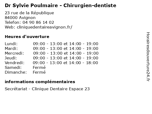 | Lundi | 09:00-13:00 et 14:00-19:00 |