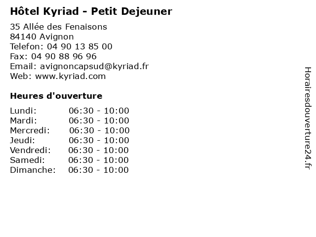 1 Hôtel Kyriad - Petit Dejeuner (Distance: 4,03 km) 26 Place de l'Horloge, 84000 Avignon "petit, dejeuner, hotel, hôtel, kyriad, petit, petit dejeuner, restaurant 2 Hôtel Kyriad - Petit Dejeuner (Distance: 5,83 km) 64 bis Chemin des Petits Rougiers, 84130 Le Pontet "petit, dejeuner, hotel, hôtel, kyriad, petit, petit dejeuner, restaurant 3 Hôtel Kyriad (Distance: 0,09 km) 35 Allee Des Fenaisons, 84140 Avignon bar, hotel, hôtel, kyriad, restaurant, service 4 Hôtel Campanile (Distance: 0,44 km) 60 Rue du Bon Vent, 84140 Avignon bar, campanile, hotel, hôtel, restaurant, réunions, évenements 5 Vert Hôtel (Distance: 0,61 km) 130 Avenue Pierre de Coubertin, 84000 Avignon cafe, hotel, hôtel, restaurant, service, vert 6 Petit Bateau (Distance: 0,83 km) 162 Avenue Pierre Semard, 84000 Avignon bateau, magasin de vêtements pour enfants, magasin de vêtements pour femmes, mode, petit |