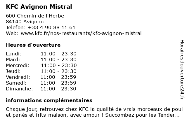 Termes de recherche pour KFC Avignon Mistral:restaurant, avignon, kfc, fastfood, mistral, frites, burgers et buckets, poulet et bucket |