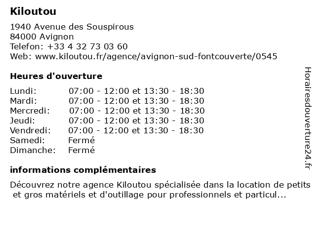 | Lundi | 07:00-12:00 et 13:30-18:30 |