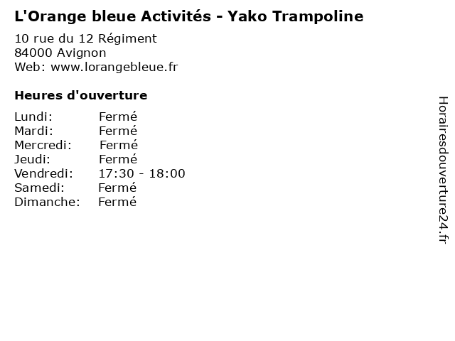 | Samedi | Fermé |