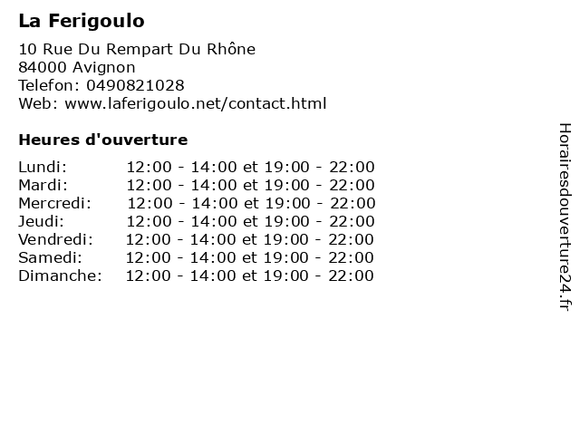 Lundi | 12:00-14:00 et 19:00-22:00 |