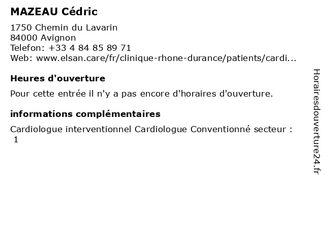 1 Cédric DARTOIS (Distance: 15,19 km) 53 Avenue De La Liberation, 13210 Saint Rémy de Provence cédric, dartois 3 Cédric Lamacchia - Masseur kinésithérapeute (Distance: 26,01 km) - Route de Maussane, 13890 Mouriès cedric, consultation, cédric, docteur, kinésithérapeute, lamacchia, masseur, med, médecin, traitement 5 Dr Cédric Formet - Néphrologue (Distance: 29,51 km) - avenue Alphonse Daudet, 30205 Bagnols-sur-Cèze arthere, chirurgien, corronere, cédric, dr, formet, médecine, néphrologue, vasculaire 6 |