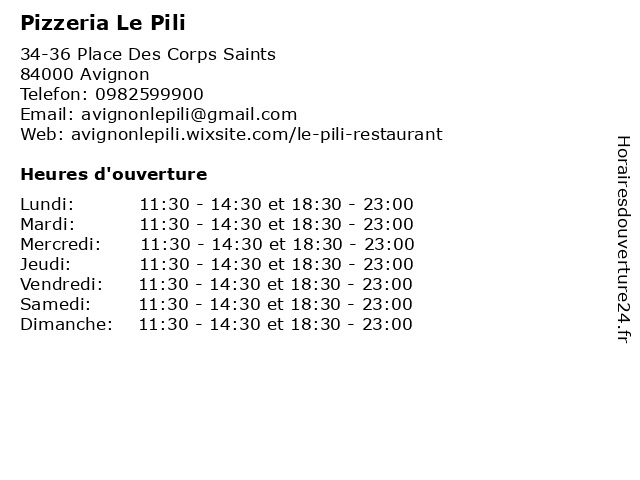 | Lundi | 11:30-14:30 et 18:30-23:00 |