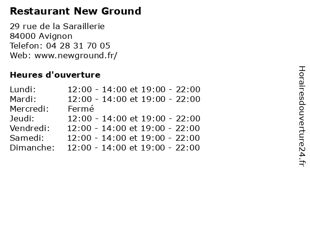 | Dimanche | 12:00-14:00 et 19:00-22:00 |
