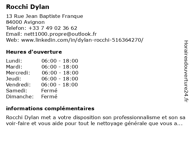 | Lundi | 06:00-18:00 |