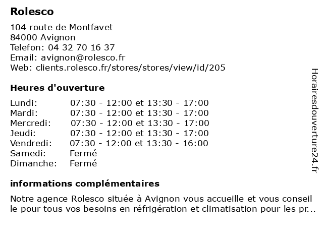 Lundi | 07:30-12:00 et 13:30-17:00 |