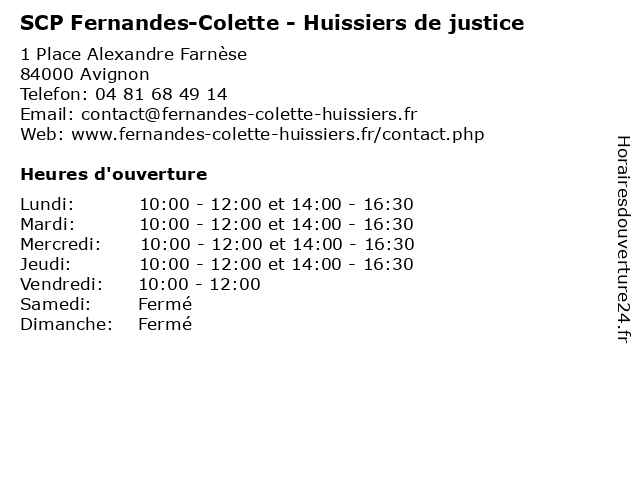 1 SCP Roland et Associés (Distance: 1,08 km) 70 Avenue de la Trillade, 84000 Avignon associés, et, roland, scp 2 Philippe Toulouse & Christophe Magnier - Huissiers de justice (Distance: 1,97 km) 3 Impasse Julien, 84097 Avignon cabinet, christophe, de, et, huissier, huissiers, justice, magnier, philippe, philippe toulouse et christophe magnier -huissiers de justice, toulouse 3 SCP Fortunet Et Associés (Distance: 2,22 km) 10 Rue du Roi René, 84000 Avignon associés, et, fortunet, scp 4 Nicolas Valentini et Sophie Vernimont SCP (Distance: 2,29 km) 12 Avenue Eisenhower, 84000 Avignon et, nicolas, scp, sophie, valentini, vernimont 5 SELARL Pierre Troupel - Huissiers de justice (Distance: 4,81 km) - Boulevard Pasteur, 30400 Villeneuve-lès-Avignon citoyen, de, huissier, huissiers, justice, lois, pierre, selarl, troupel 6 Le Jardin de Colette - Valayans Primeurs (Distance: 12,94 km) 1485 avenue des Valayans, 84210 Althen-des-Paluds alimentation, charcuterie, colette, de, fruits, jardin, le, légumes, primeurs, valayans, épicerie |