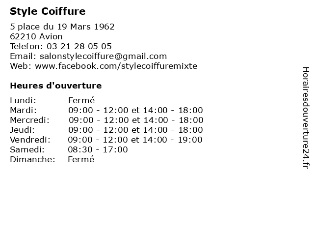 2 Domicile Coiffure Christelle (Distance: 1,10 km) 2 Rue Alphand, 62210 Avion christelle, coiffure, domicile 3 Indigo Coiffure (Distance: 2,23 km) 17 place de la République, 62300 Lens beauté, coiffeur, coiffure, indigo, lens, salon, soins 5 Numéro 7 Coiffure (Distance: 2,48 km) 92 Rue René Lanoy, 62300 Lens beauté, brushing, coiffeur, coiffure, coupe, institut, lissage, numéro 6 Isa Leignel Coiffure Beauté (Distance: 2,50 km) 4 Boulevard Emile Basly, 62300 Lens beauté, coiffeur, coiffure, coupe, isa, leignel, salon |