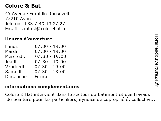 | Vendredi | 07:30-19:00 |