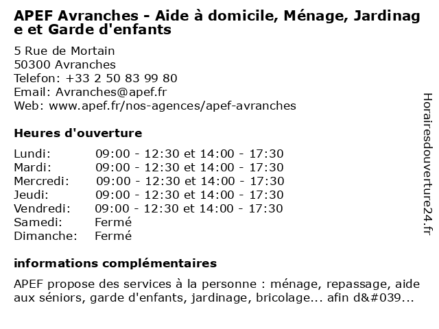 Termes de recherche pour APEF Avranches - Aide à domicile, Ménage, Jardinage et Garde d'enfants:et, garde, avranches, jardinage, domicile, apef, ménage, aide, d'enfants |