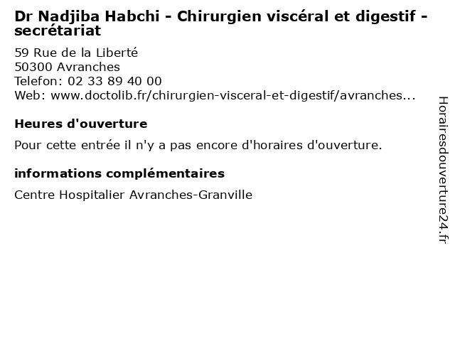 | Appeler Dr Nadjiba Habchi - Chirurgien viscéral et digestif - secrétariat | |