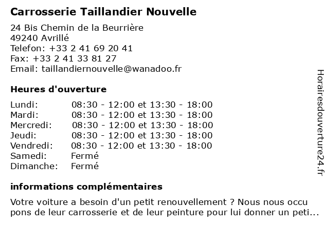 | Lundi | 08:30-12:00 et 13:30-18:00 |