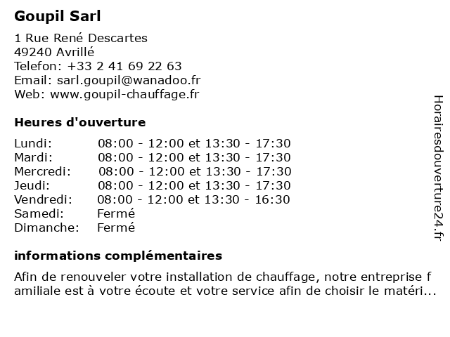 | Lundi | 08:00-12:00 et 13:30-17:30 |