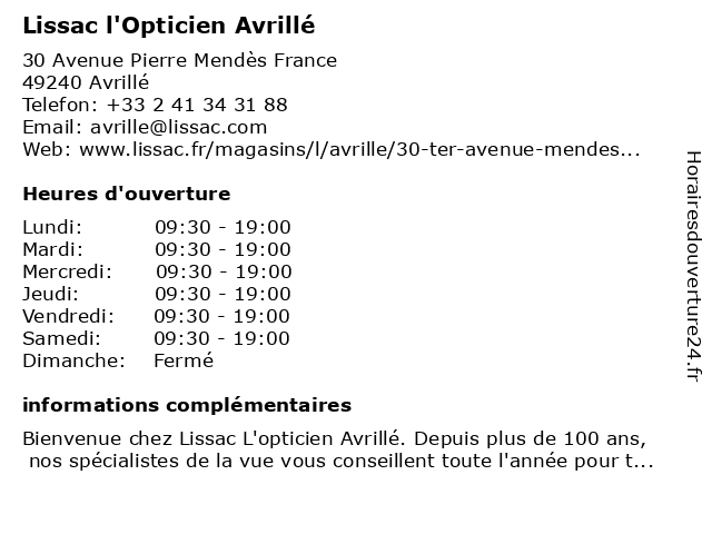 | Dimanche | Fermé |