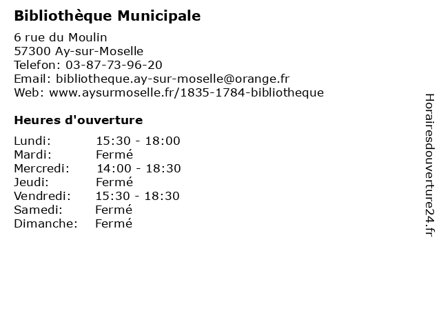 1 Bibliothèque Municipale (Distance: 1,68 km) 7 bis rue du Stade, 57300 Tremery bibliothèque, cd audio, cd.rom, livres, municipale, revues 2 Bibliothèque Municipale (Distance: 5,10 km) . place Anne de Méjanes, 57640 Argancy bibliothèque, cd audio, cd.rom, livres, municipale, revues 3 Bibliothèque Municipale (Distance: 10,44 km) 40 rue Principale, 57920 Aboncourt bibliothèque, cd audio, cd.rom, livres, municipale, revues 4 Bibliothèque Municipale (Distance: 12,02 km) 4 rue des Ecoles, 57920 Kédange sur Canner bibliothèque, cd audio, cd.rom, livres, municipale, revues 5 Bibliothèque municipale (Distance: 13,97 km) 7 Esplanade de la Liberté, 57700 Hayange bibliothèque, cd audio, cd.rom, livres, municipale, revues 6 Bibliothèque municipale (Distance: 16,10 km) 13 rue Jeanne d'Arc, 57160 Châtel-Saint-Germain bibliothèque, cd audio, cd.rom, livres, municipale, revues |
