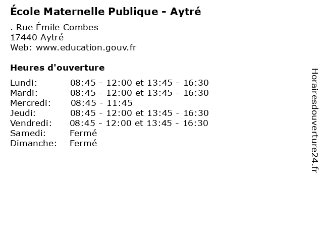 | Lundi | 08:45-12:00 et 13:45-16:30 |