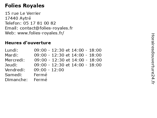 | Mardi | 09:00-12:30 et 14:00-18:00 |