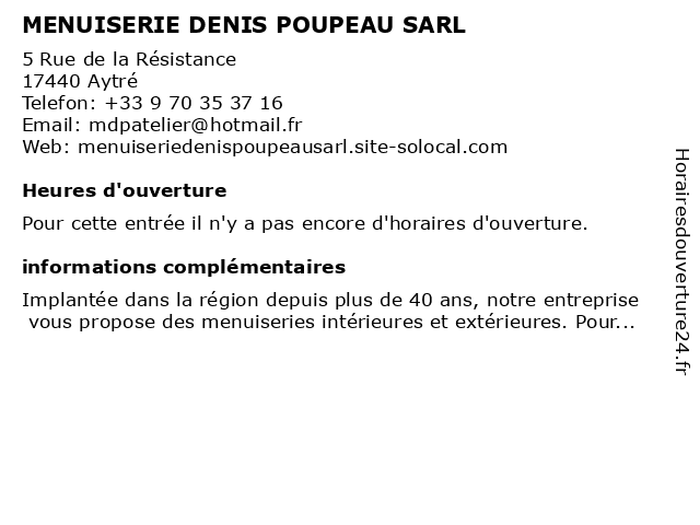 | Appeler MENUISERIE DENIS POUPEAU SARL | |