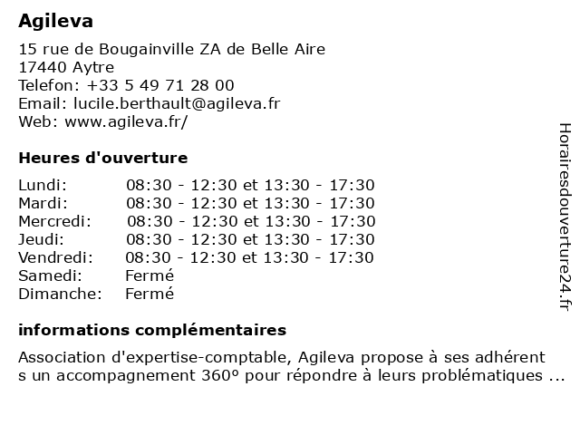 2 Agileva (Distance: 34,62 km)4 Rue Gustave Oriot, 17560 Bourcefranc-le-Chapus agileva